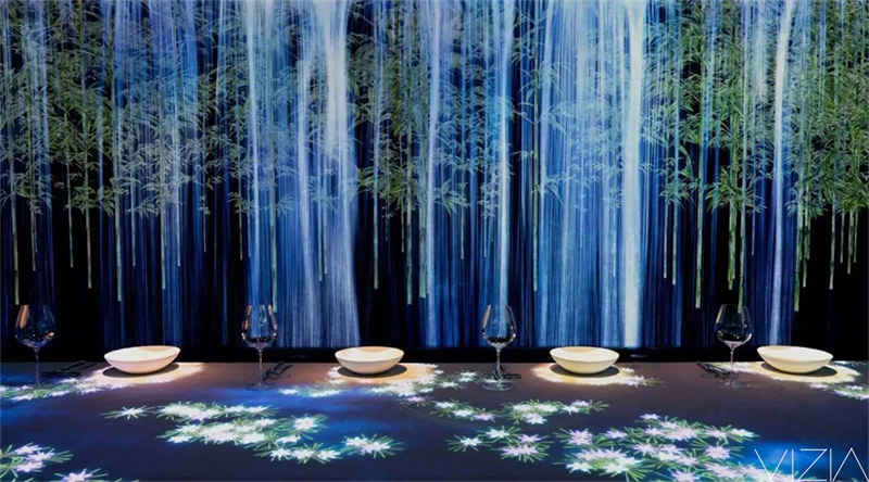 我想這就是全息光影餐廳的魅力的,將很多夢幻場景變?yōu)楝F(xiàn)實,在這樣的空間場景內(nèi)就餐,感受科技所帶來的沉浸式體驗。