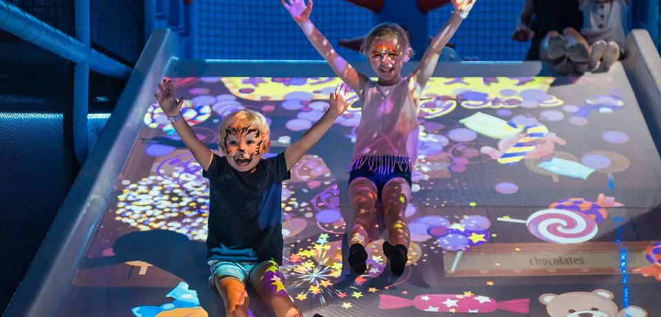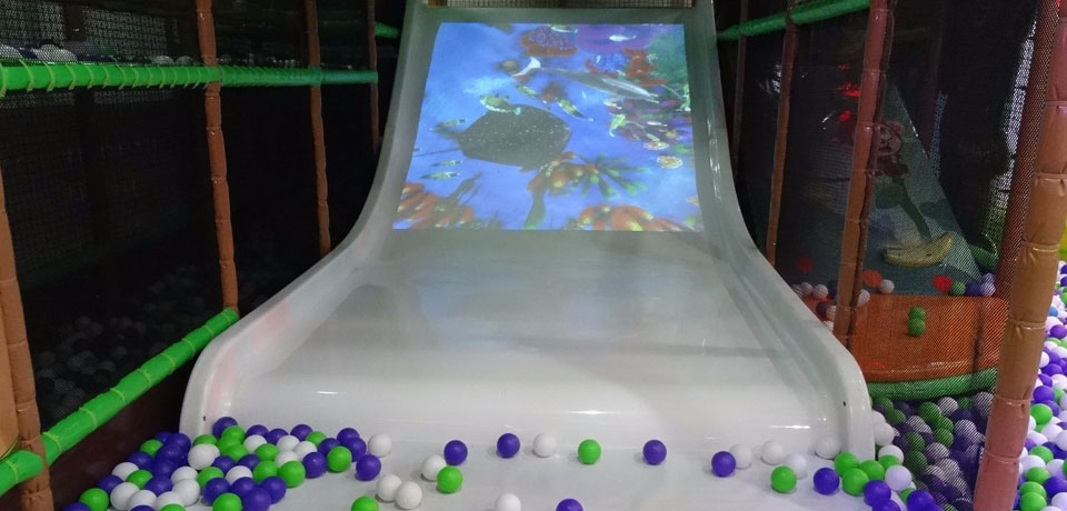 互動(dòng)投影技術(shù)和傳統(tǒng)滑梯的相互融合,是針對傳統(tǒng)滑梯的科技化升級改造。讓孩子不僅僅是單純的玩還可以與投影的虛擬畫面中的人物、景象進(jìn)行互動(dòng)。